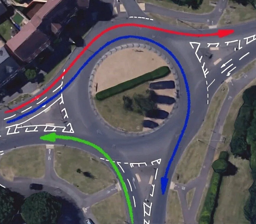 Plan well ahead, looking out for warning signs and direction signs to help you select the most appropriate lane. as well as helping you plan your route through the roundabout. Also look out for road markings, including route numbers which can help with planning.